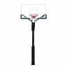 Щит изготовлен из закаленного стекла толщиной 10 мм и имеет размерность 180 х 105 см (72’’). По периметру щит имеет кант из металла. В нижней части щита и на стойке установлено защитное покрытие Poly Pade. Стойка комплектуется кольцом DFC R3 с амортизацией, которое выдерживает нагрузку до 300 кг в передней части. Бесступенчатая регулировка высоты с помощью ручки в диапазоне от 245 до 305 см.